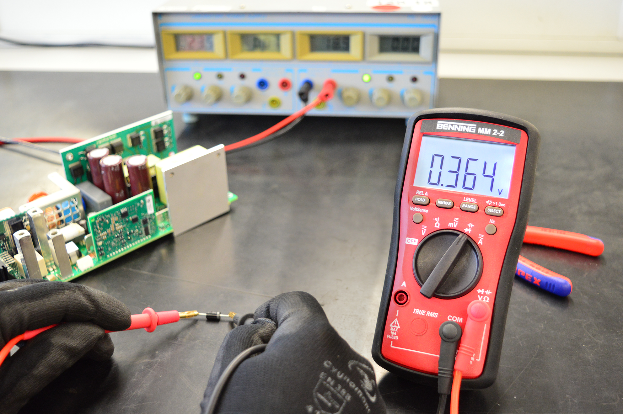 • Snelle doorgangstest (< 15 ms) met optische en akoestische indicatie, diodetest