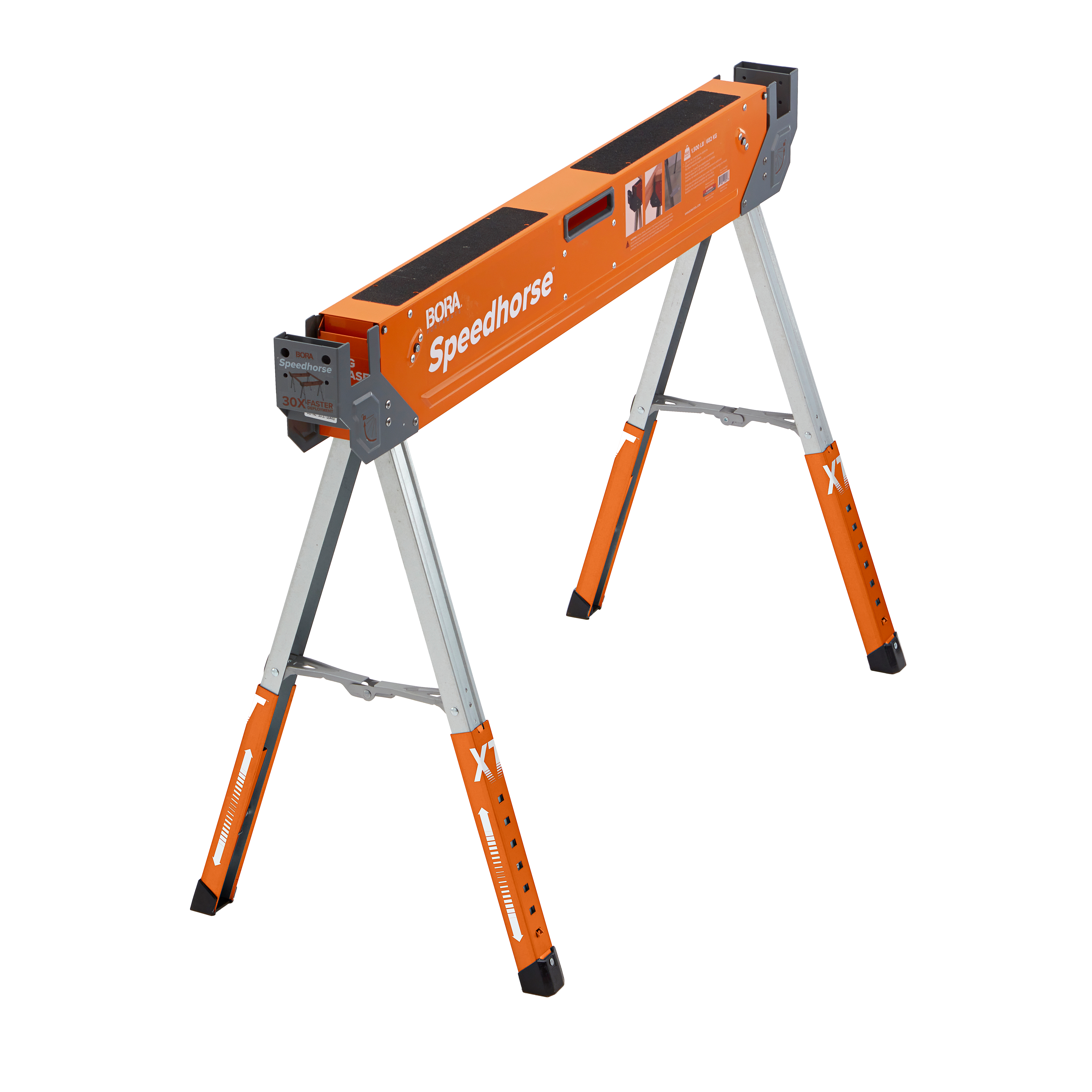 • Directe inzet - Installeer onmiddellijk door aan een hendel te trekken en demonteer net zo gemakkelijk als met de Speedhorse™, als je de poten ingesteld hebt op 30" kun je ze eenvoudig in de zaagbok vouwen.