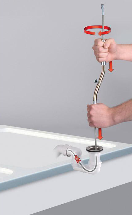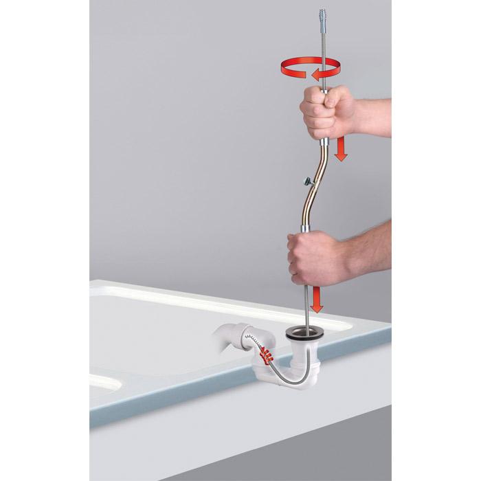 Speciaal ontwikkelde en unieke ontstopper voor uiterst moeilijk bereikbare afvoeren in douche of bad