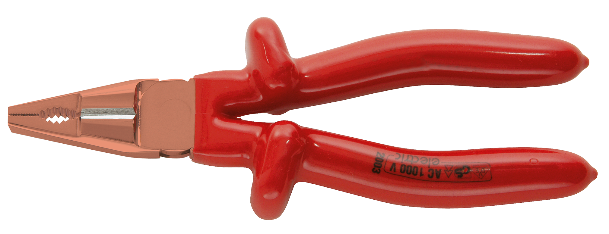 Volledig geïsoleerde tang met gecoate werkkop om kortsluiting te voorkomen met een beperkte openingshoek van 30°
