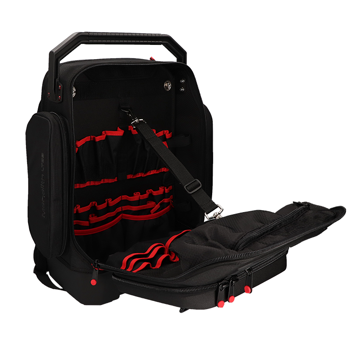 Gereedschapsrugzak geschikt voor het meenemen van gereedschap, documenten en een 15” laptop.