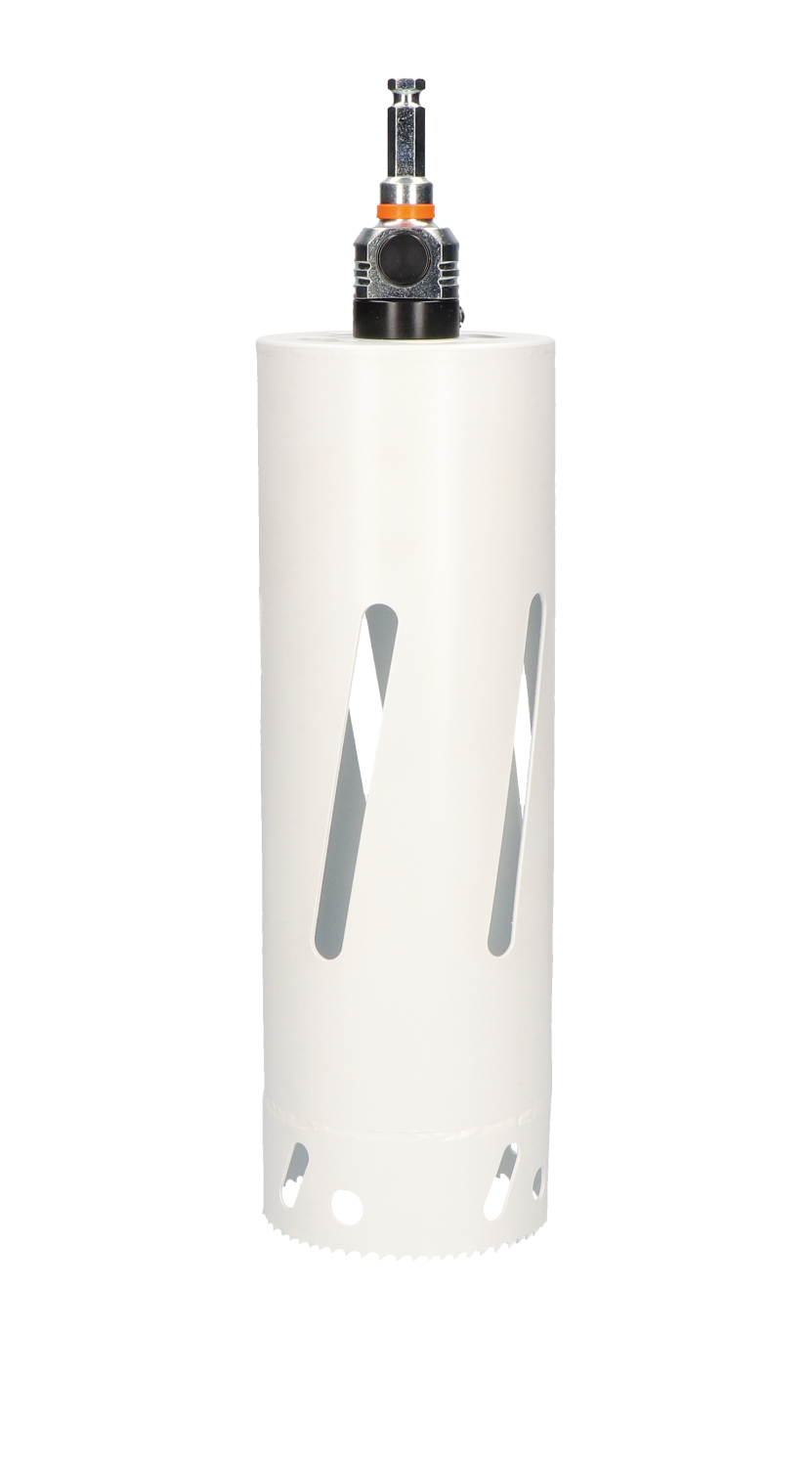 Extra lange Bi-metaal M42 gatzaag, inclusief de unieke MXqs-adapter EN MXqs gatzaaghouder met snelle ontgrendeling.