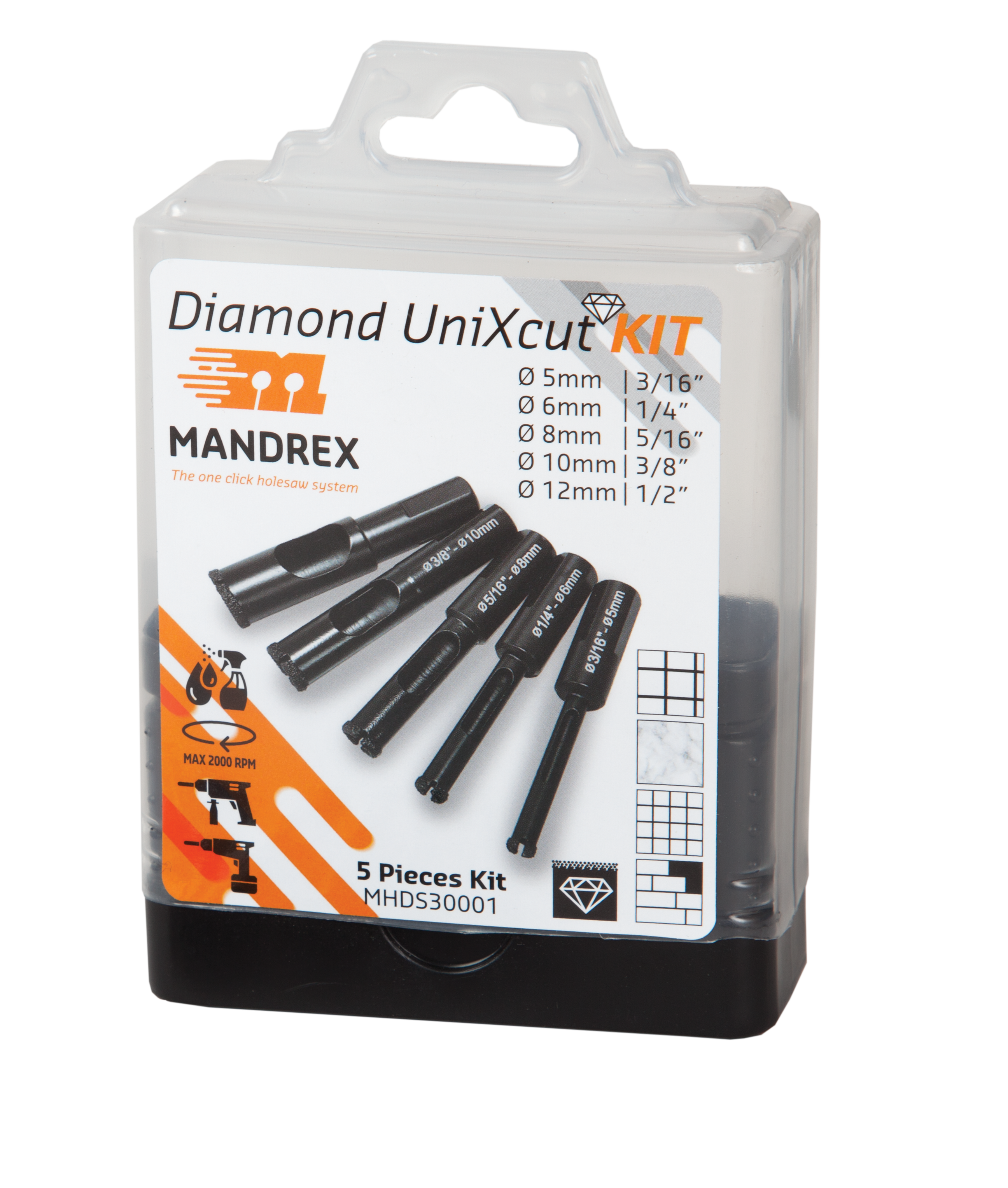 Mandrex UniXcut Diamantboorset MHDS30001 5-12mm, 5-delig
