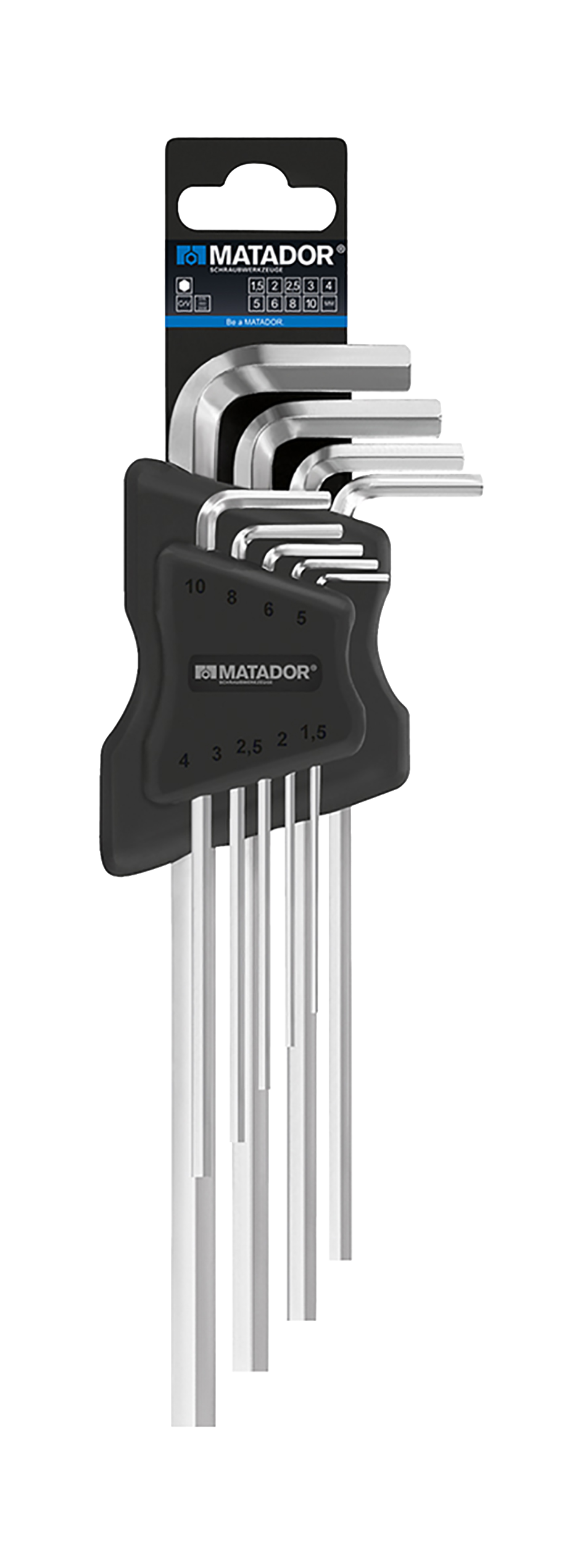Matador Lange Inbussleutelset mat verchroomd 1,5-10mm, 9-delig