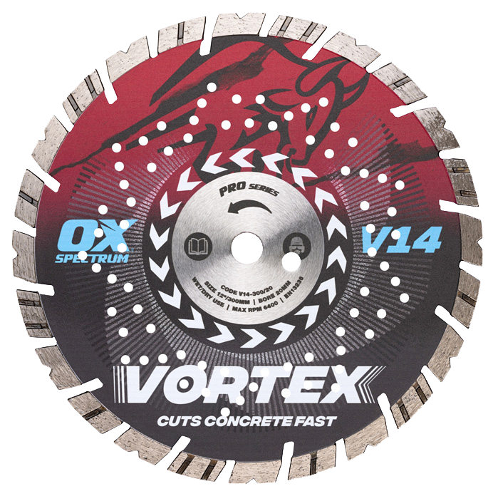 Het OX Spectrum Pro V14 Diamond Blade heeft een NV-tandsegmentontwerp voor snel en agressief zagen van beton.
