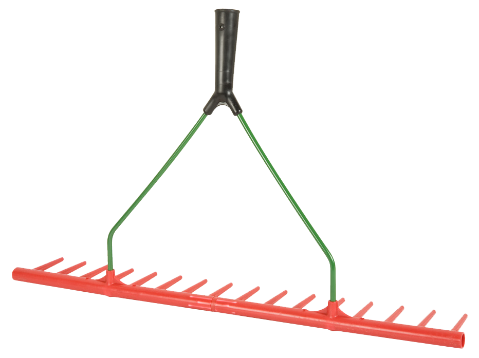 Gazonhark met essen steel, ideaal om gemaaid gras en bladeren samen harken