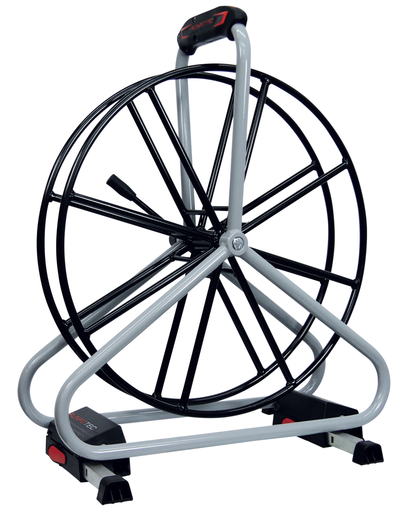 De stalen haspel is gepoedergecoat, en voorzien van een parkeerrem een ergonomische handvat.