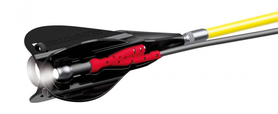 De RUNPOTEC LED high-performance batterijlamp 320 lumen kan in de Systeemgeleide worden geplaatst.