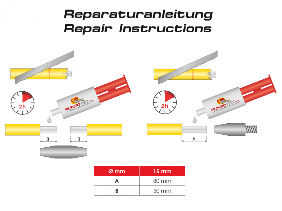 RUNPO RVS Reparatieset Ø 15mm Glasvezel Trekveer, 4-delig