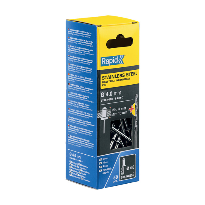 Rapid RVS Blindklinknagels Ø 4,0 x 14mm + boor in blister (50 stuks)