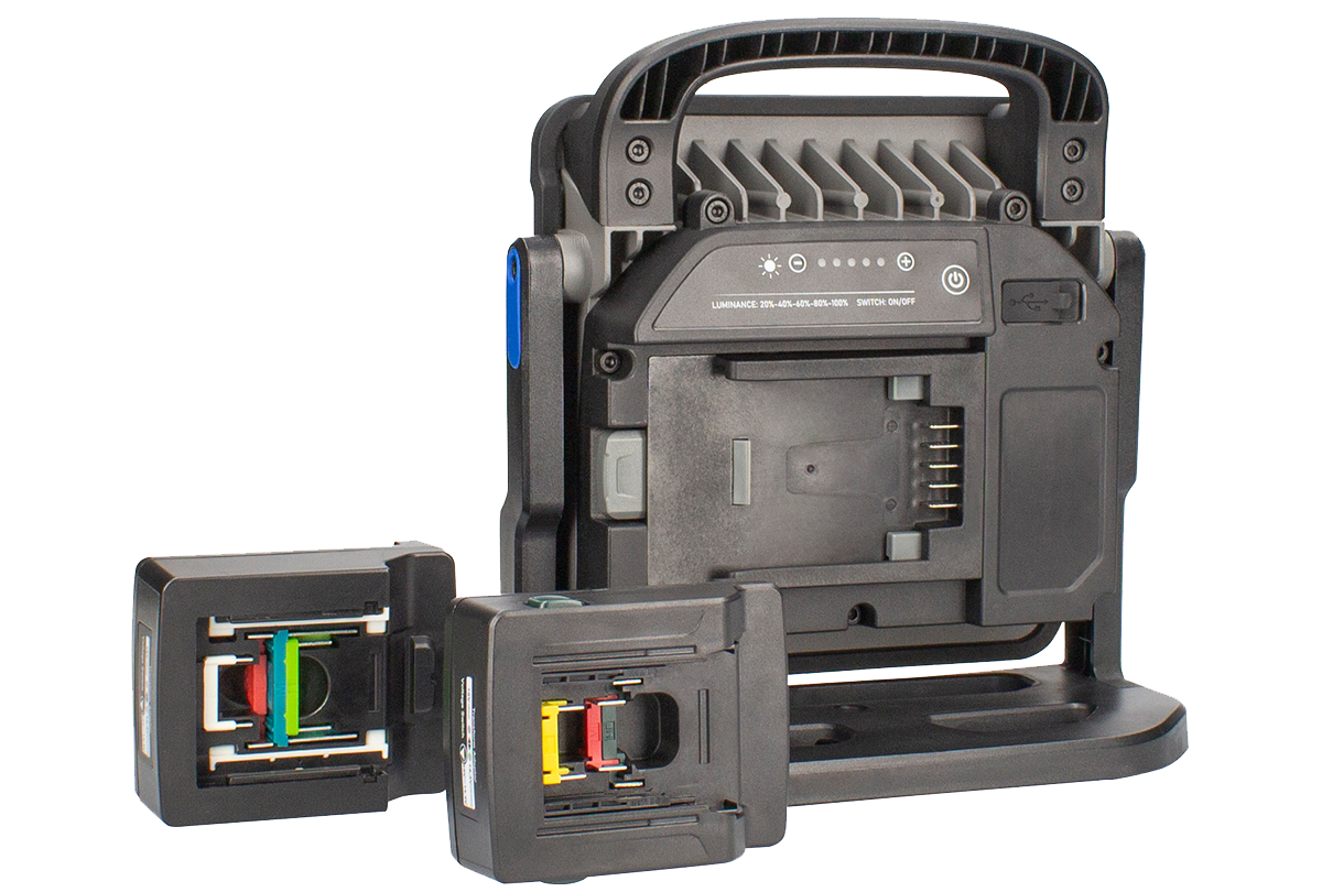 Acculine Multi LED lamp 40 W met adapters voor het gebruik van 14,4 V of 18 V batterij van verschillende fabrikanten