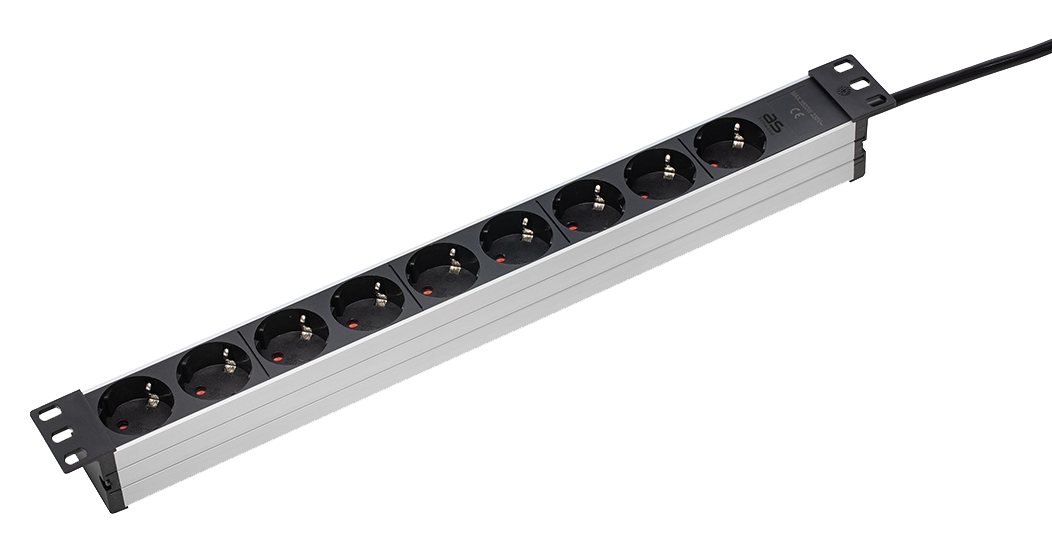 Schwabe Aluminium Stekkerdoos 19" Rack 9x randaarde kabel H05VV-F 3G1,5 zwart 2m