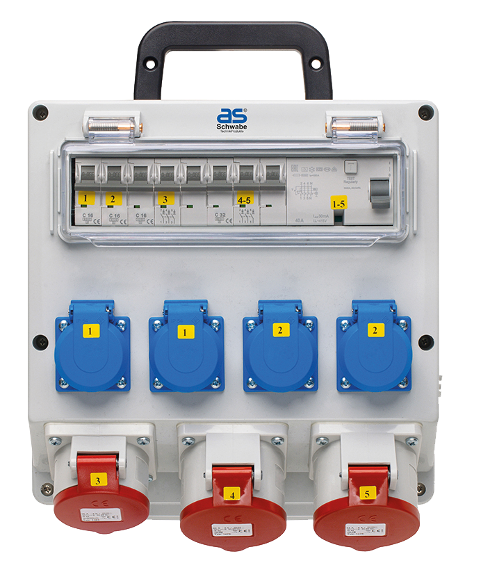 • 1x CEE-contactdoos 400 V, 16 A, 5-polig