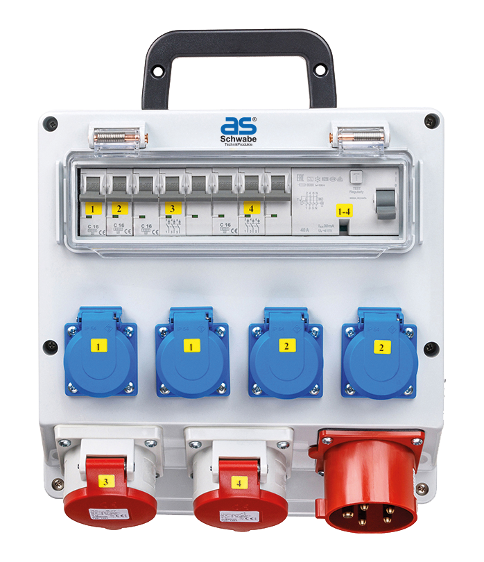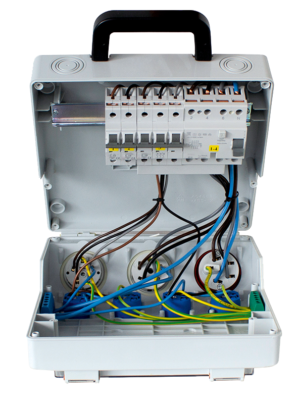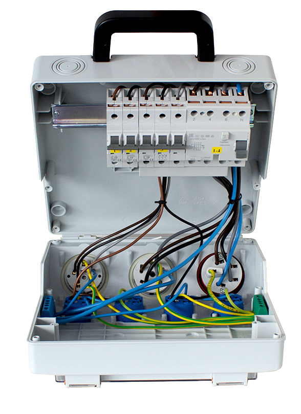 • 4x geaarde contactdoos 230 V, 16 A (over fasen verdeeld)
