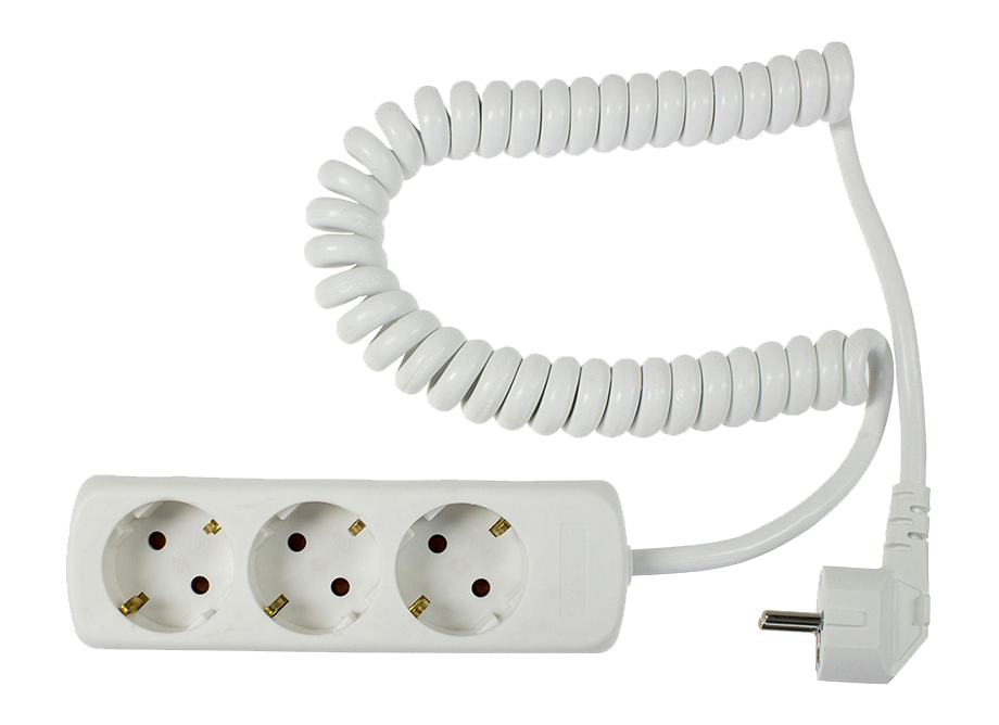 Schwabe Stekkerdoos 3x randaarde met haakse stekker + spiraalkabel H05VV-F 3G1.5 wit 2.5m