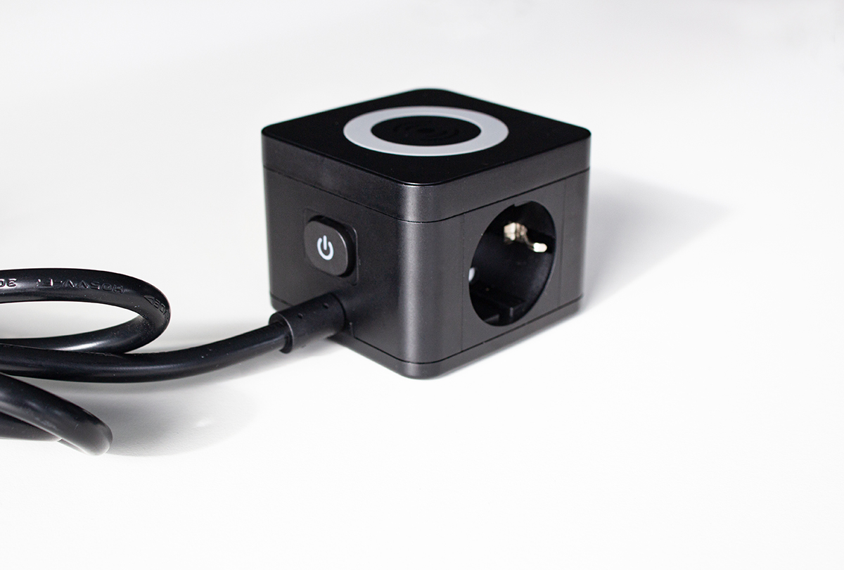 Stekkertoren 2 x randaarde 3 x USB met inductielader 1.5m kabel