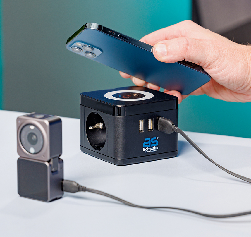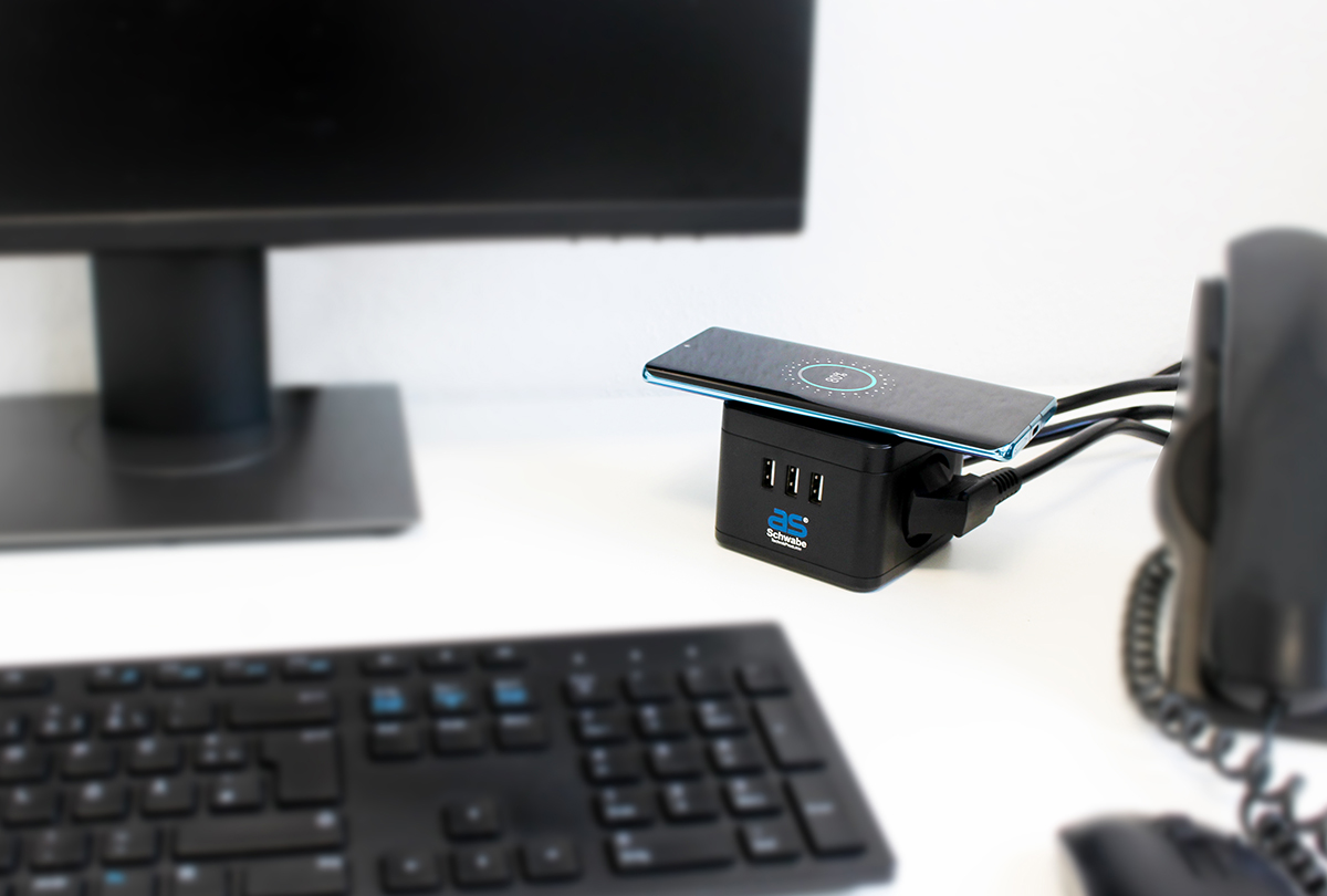 Schwabe Stekkertoren 2 x randaarde 3 x USB met inductielader 1.5m kabel