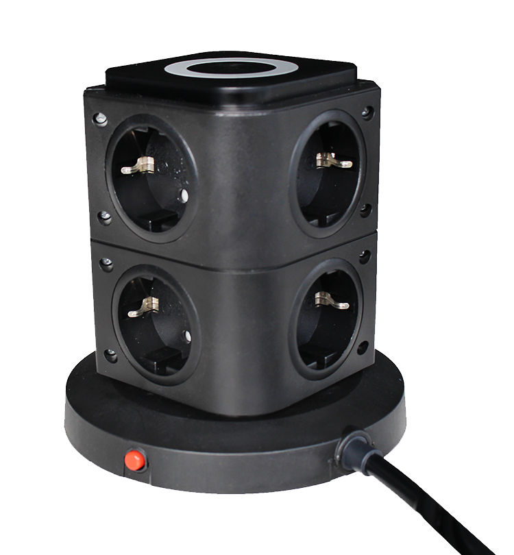 Stekkertoren 8 x randaarde 3 x USB met inductielader 2m kabel