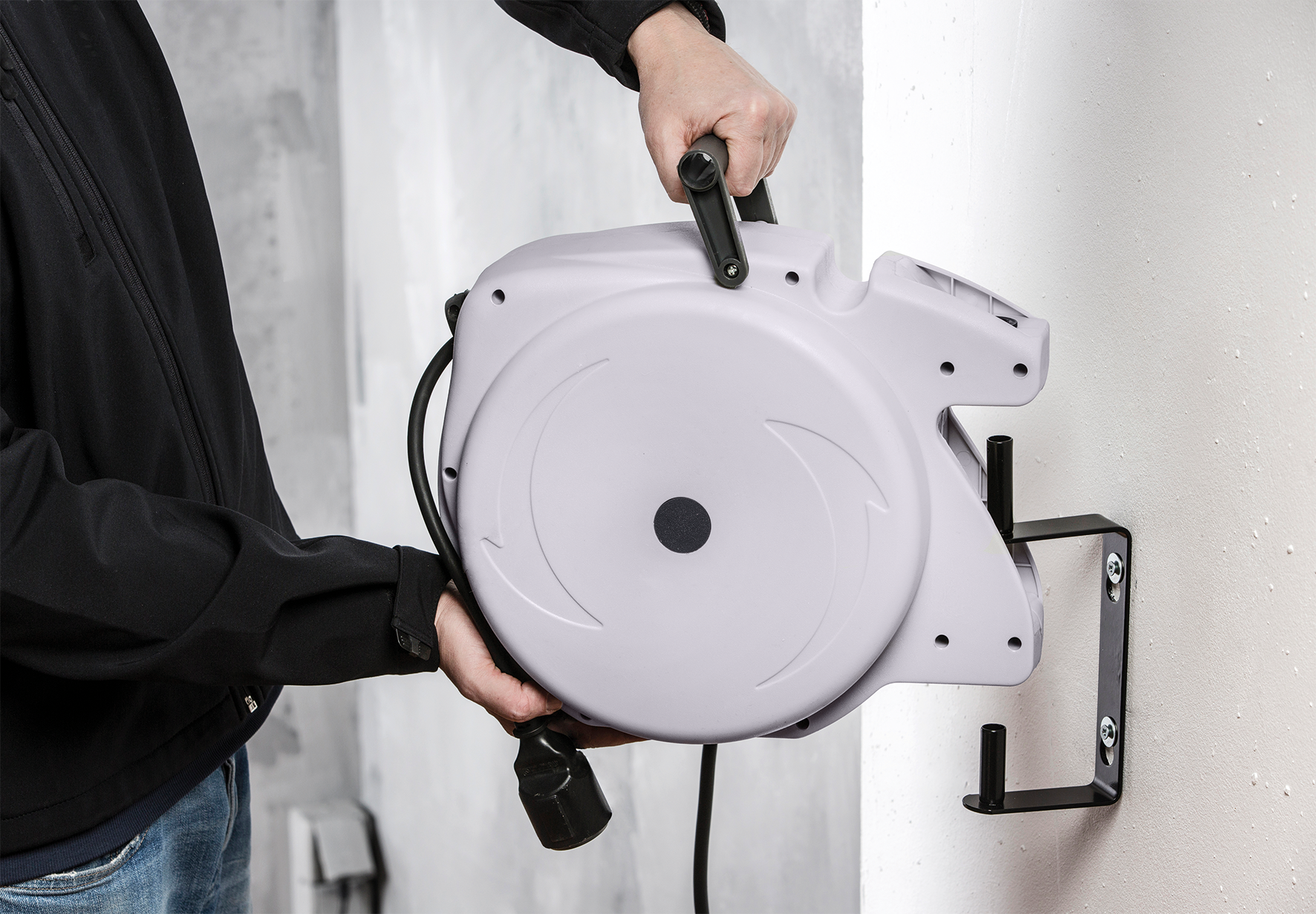 “EASY TO GO”: Haal de kabelhaspel eenvoudig van de muurbeugel en gebruik hem onderweg