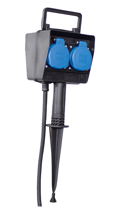 Schwabe Verdeeldoos op spie 230V/16A IP44 H07RN-F 3G1.5 2m 2-voudig