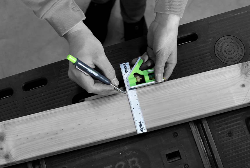 Uitgerust met zowel imperiale als metrische schalen, is de TRACER-combinatie winkelhaak ontworpen voor eenvoudige en nauwkeurige horizontale en verticale precisiemarkering
