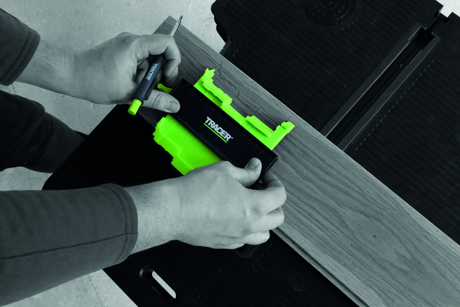 Met een vergrendelbaar mechanisme vergrendelt de Contourenmeter op zijn plek om nauwkeurig af te kunnen tekenen.