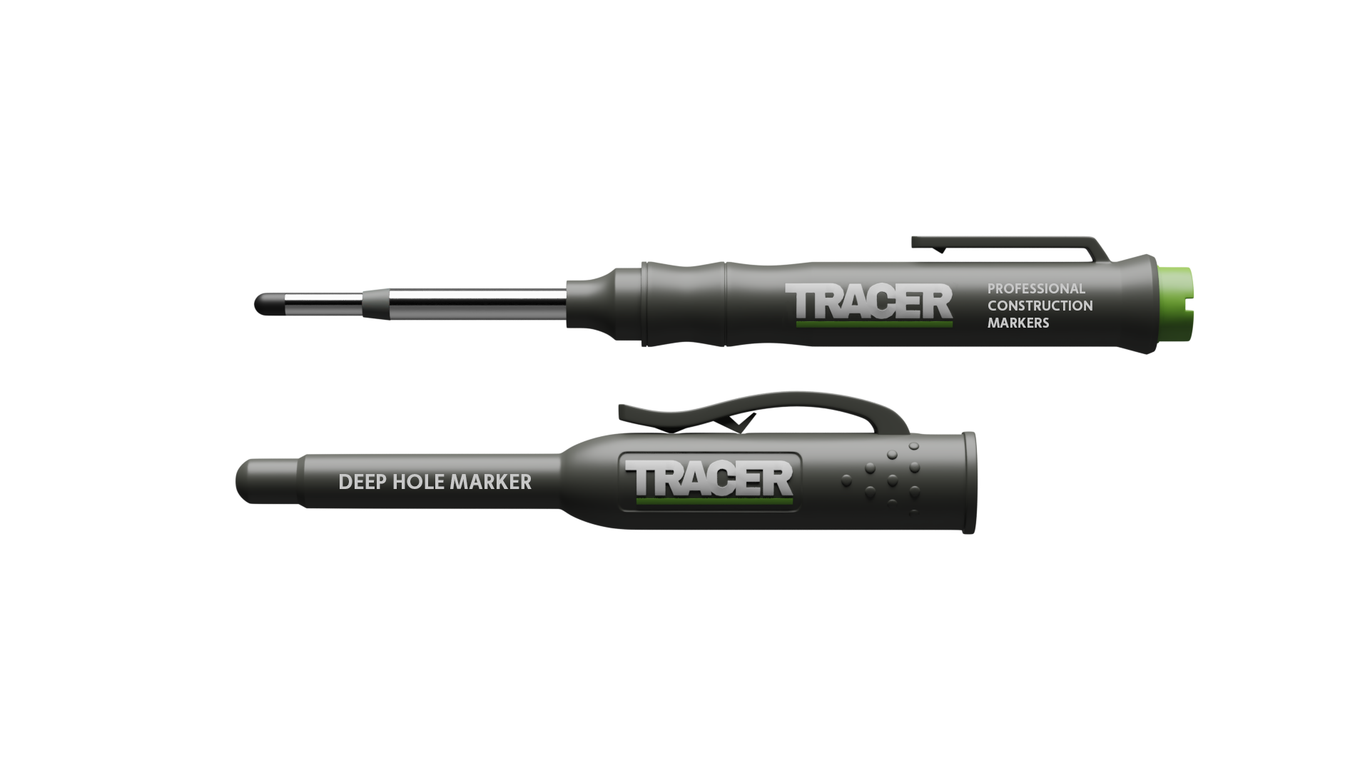 Het unieke ontwerp van de TRACER diepgatmarker heeft een dubbele punt die kan worden omgekeerd om zowel dikke als dunne lijnen te markeren.