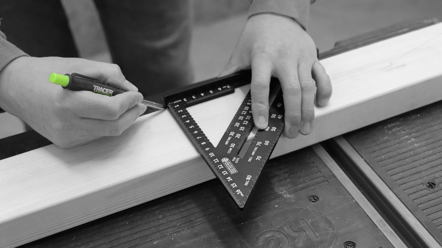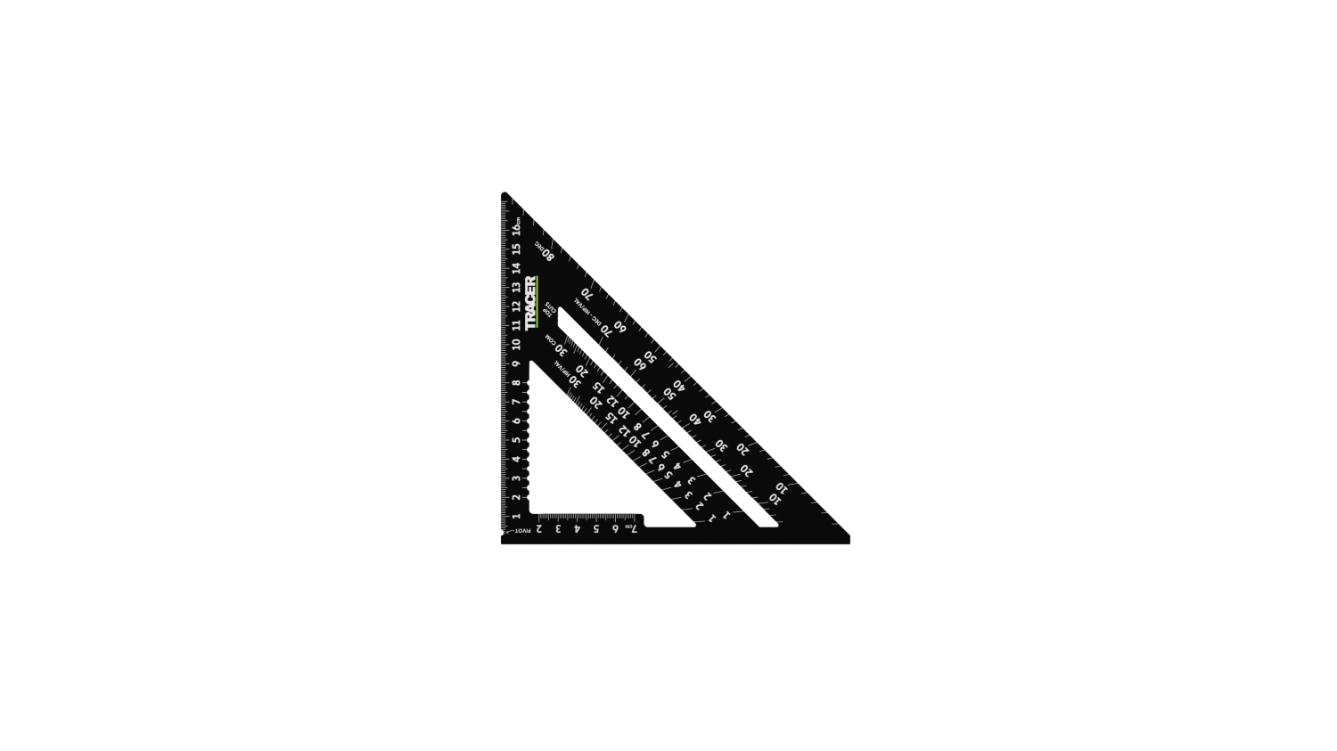 De TRACER Speed Square is een precisietimmergereedschap dat ideaal is voor het markeren van hout en spanten. Het is gemaakt van robuust aluminium en is uitgerust met twee linialen en hoekmarkeringsgeleiders.