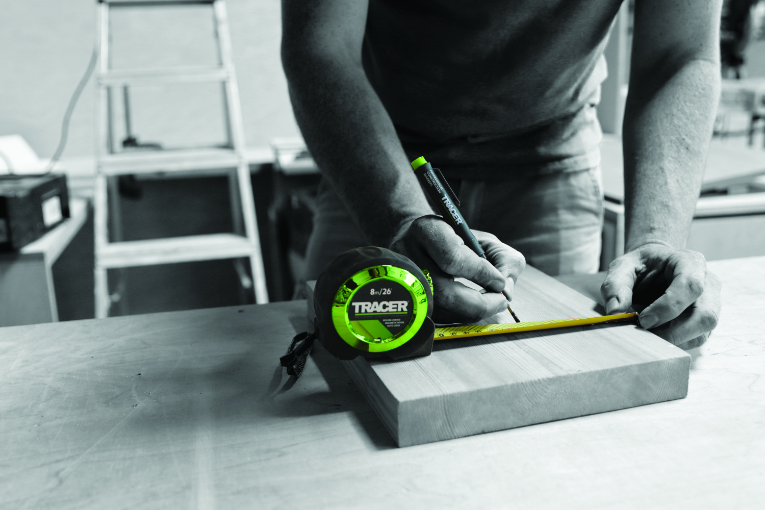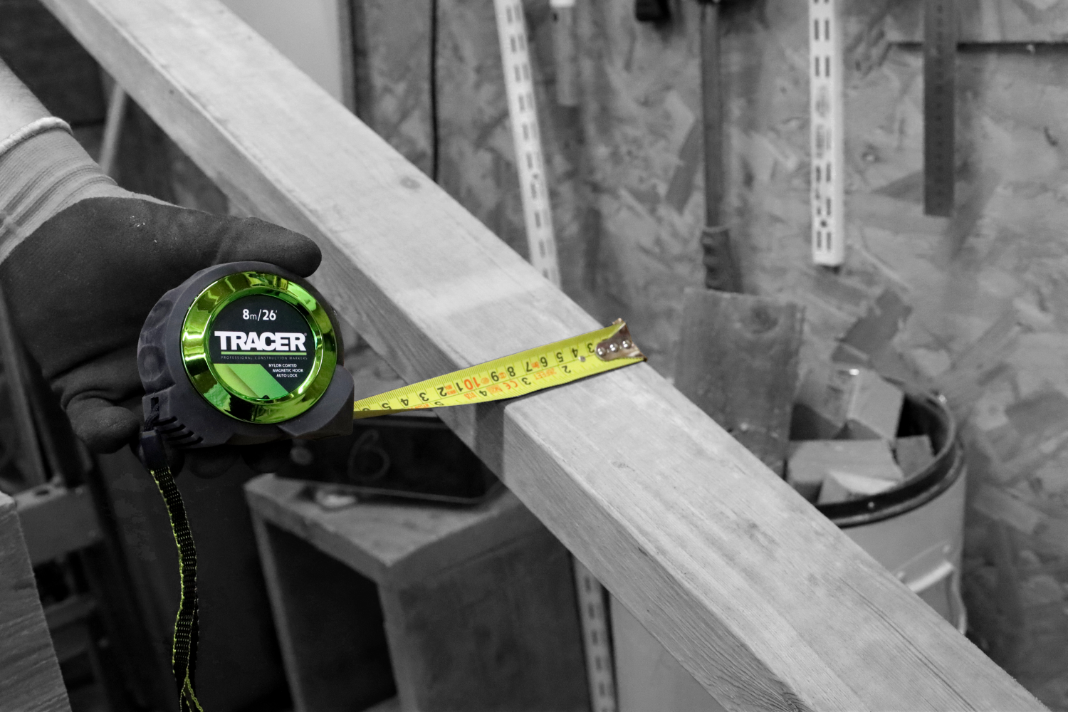 Het TRACER meetlint is een hoogwaardig meetinstrument, compleet met een automatische vergrendelingsfunctie en magnetische haak.
