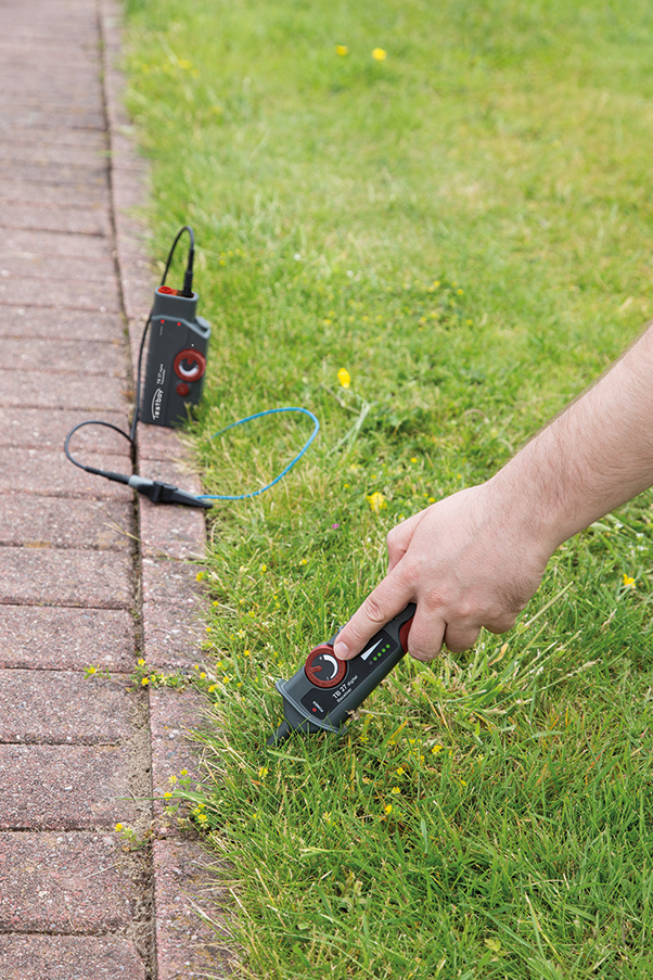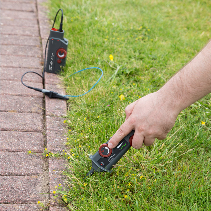 De Testboy 27 digital maakt het lokaliseren van leidingen en kabels in de grond mogelijk om bijv. de begrenzingsdraad van een robotmaaier op te sporen