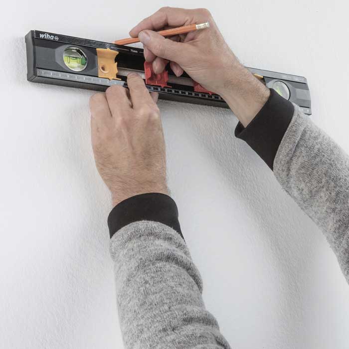 Toepassing: Voor het horizontaal en verticaal uitmeten en markeren van de onderlinge afstanden van inbouwdozen