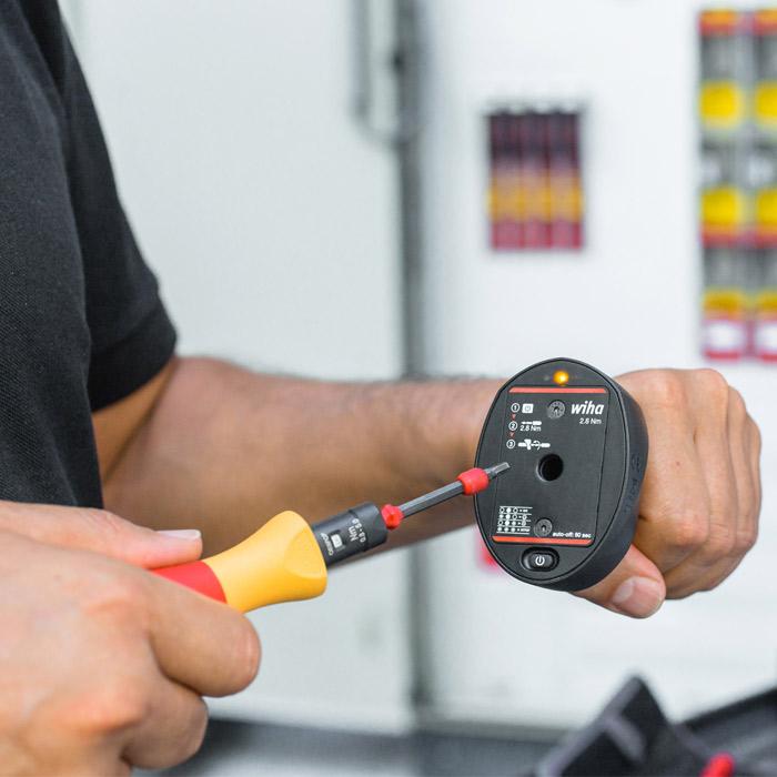 Met de Torque QuickCheck van Wiha kunnen de momentschroevendraaiers iTorque® en Torque Vario®-S voor elk gebruik snel en eenvoudig worden getest op de nauwkeurigheid van de ingestelde momentwaarde. Een regelmatige gereedschapcontrole garandeert zo betrouwbaar en nauwkeurig werken. De Torque QuickCheck is bovendien zeer gebruikersvriendelijk te bedienen: ter controle van de nauwkeurigheid van het momentgereedschap wordt de betreffende Wiha momentschroevendraaier samen met de betreffende meegeleverde adapterschacht in de Torque QuickCheck gestoken. Het testresultaat kan vervolgens helder en duidelijk aan het LED-stoplicht worden afgelezen. Dankzij zijn compacte en handzame vorm is de Torque QuickCheck de ideale begeleider in het veld.