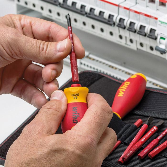 Bij de speciaal voor elektrische toepassingen ontwikkelde Wiha slimTechnology is de isolatie in de schacht geïntegreerd om tot 33% slankere schachten mogelijk te maken. Zo kunnen ook diepliggende schroef- en veerelementen
