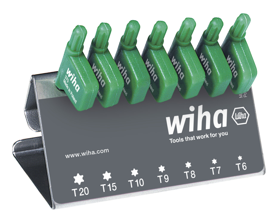 WIHA TORXsleutelset Vlaggetjesgreep 370 gezwart T6-T20 in werkbankhouder, 8-delig