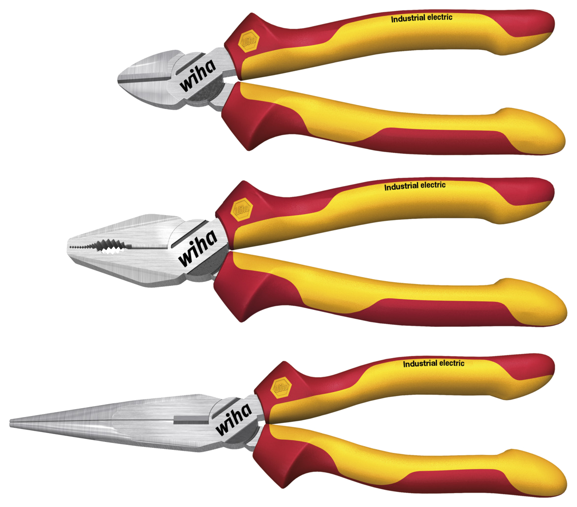 WIHA Tangenset 1000V VDE Industrial Electric Z99009: Combinatie-, Punt-, Zijkniptang, 3-delig