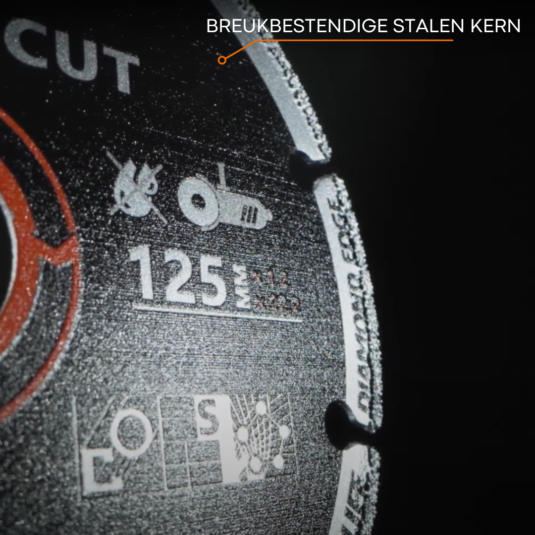 De breukbestendige stalen kern van de MetalXcut biedt een extra laag van robuustheid en betrouwbaarheid. Of je nu bezig bent met het doorslijpen van dikke metalen platen of het maken van fijne precisiesneden, je kunt erop vertrouwen dat de schijf standhoudt, zelfs onder de zwaarste omstandigheden.